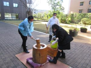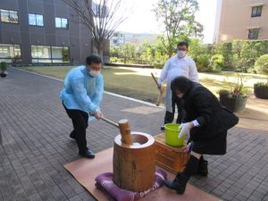 ご入居者の皆さまの元気な声に後押しされ、今年ももちもち艶々のお餅が出来上がりました。